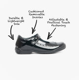 Start-Rite LEAP FROG Girls Leather T-Bar School School Shoes Patent Black